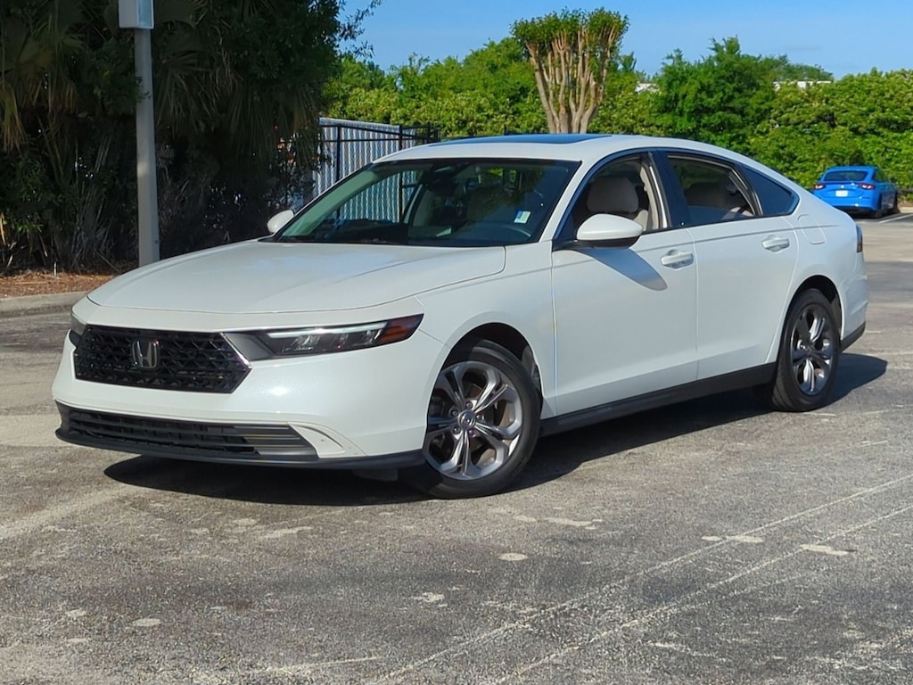 ONLY AT AUTONATION HONDA SANFORD PLEASE CALL 407-323-6100. This 2024 Honda Accord Sedan is HONDA FACTORY CERTIFIED which comes with a 7 YEAR OR 100,000 MILE WARRANTY! A 12 MONTH OR 12,000 MILE LTD COMPREHENSIVE WARRANTY WHICH WILL GIVE YOU COMPLETE PEACE OF MIND WITH THIS PURCHASE. This 2024 Honda Accord Sedan EX is proudly offered by Autonation Honda Sanford Why does this vehicle look so great? The CARFAX report shows it's only been owned by one owner. This is a Certified Honda Accord Sedan, which means it has been thoroughly inspected against a set of stringent standards. Only vehicles that pass this inspection can be sold as Certified. You could spend more on fuel each month than on your vehicle payments, so why not consider one with exceptional fuel economy like this 2024 Honda Accord Sedan. Rare is the vehicle that has been driven so gently and maintained so meticulously as this pre-owned beauty. Feel pleased in your decision to buy this Honda Accord Sedan as it's still covered under the manufacturer's warranty.